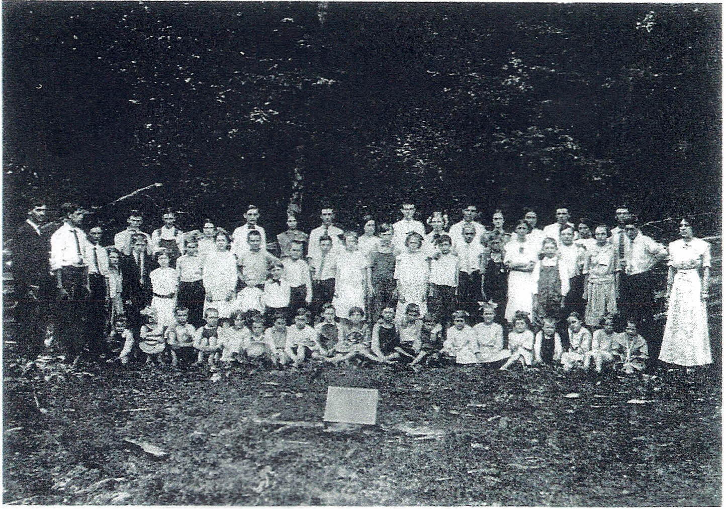 Row 1 - seated: Collie Sills, Tollie Hendrix, Loyce Bailey, Shack {Carter} Dendy, Louise Dendy, Russ Owens, Luther Conway, Hugh Conway, Jack Couch, Aulean Couch, Kirby Fly, Auvie Chapman, Lawrence Fly, Geneva Couch, Tessie Buffalo, Mary Buffalo, John Buffalo, Hazel Hendrix, Clara Sills, Mattie Sills, {behind 6 & 7} Jewel Crowder, Brown Crowder,